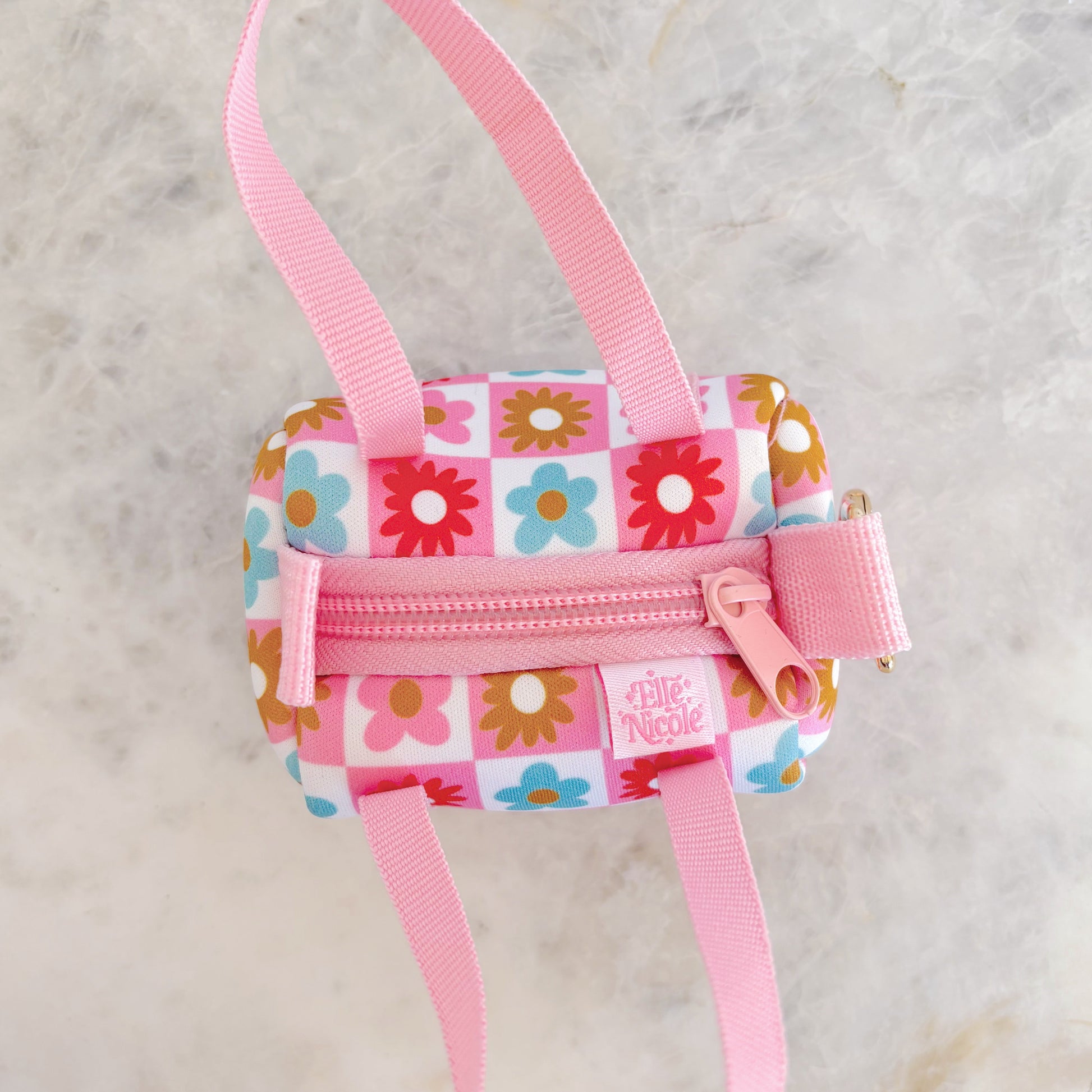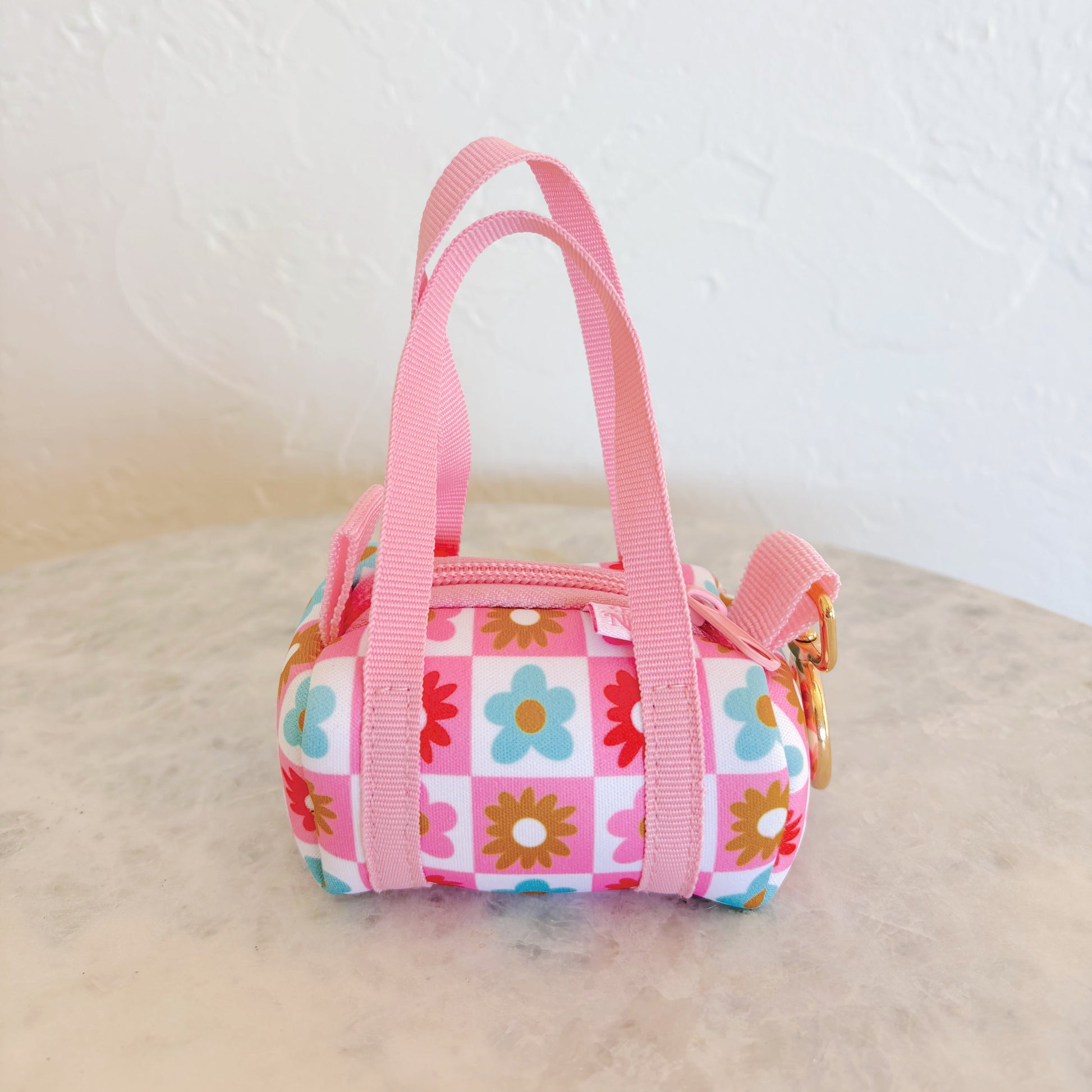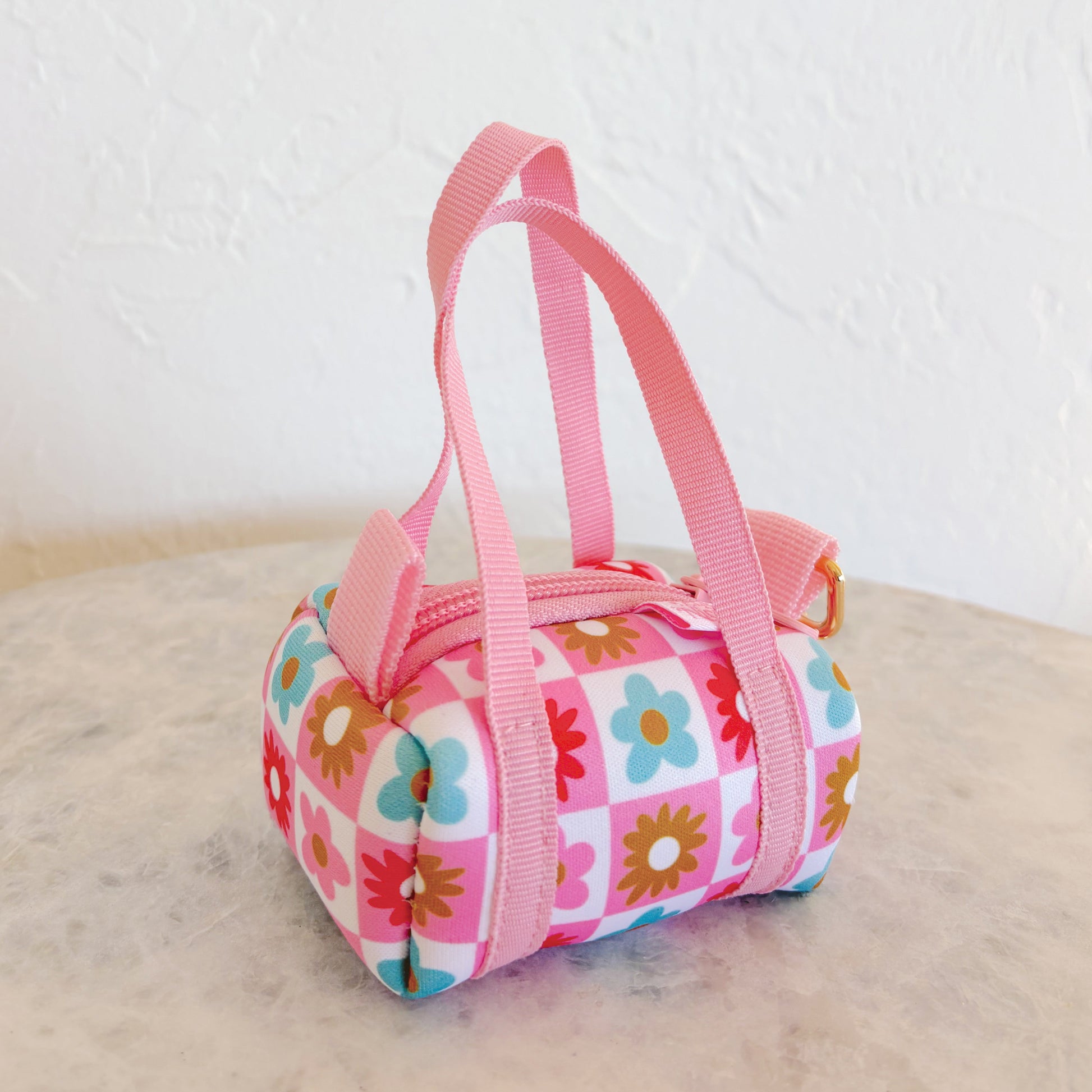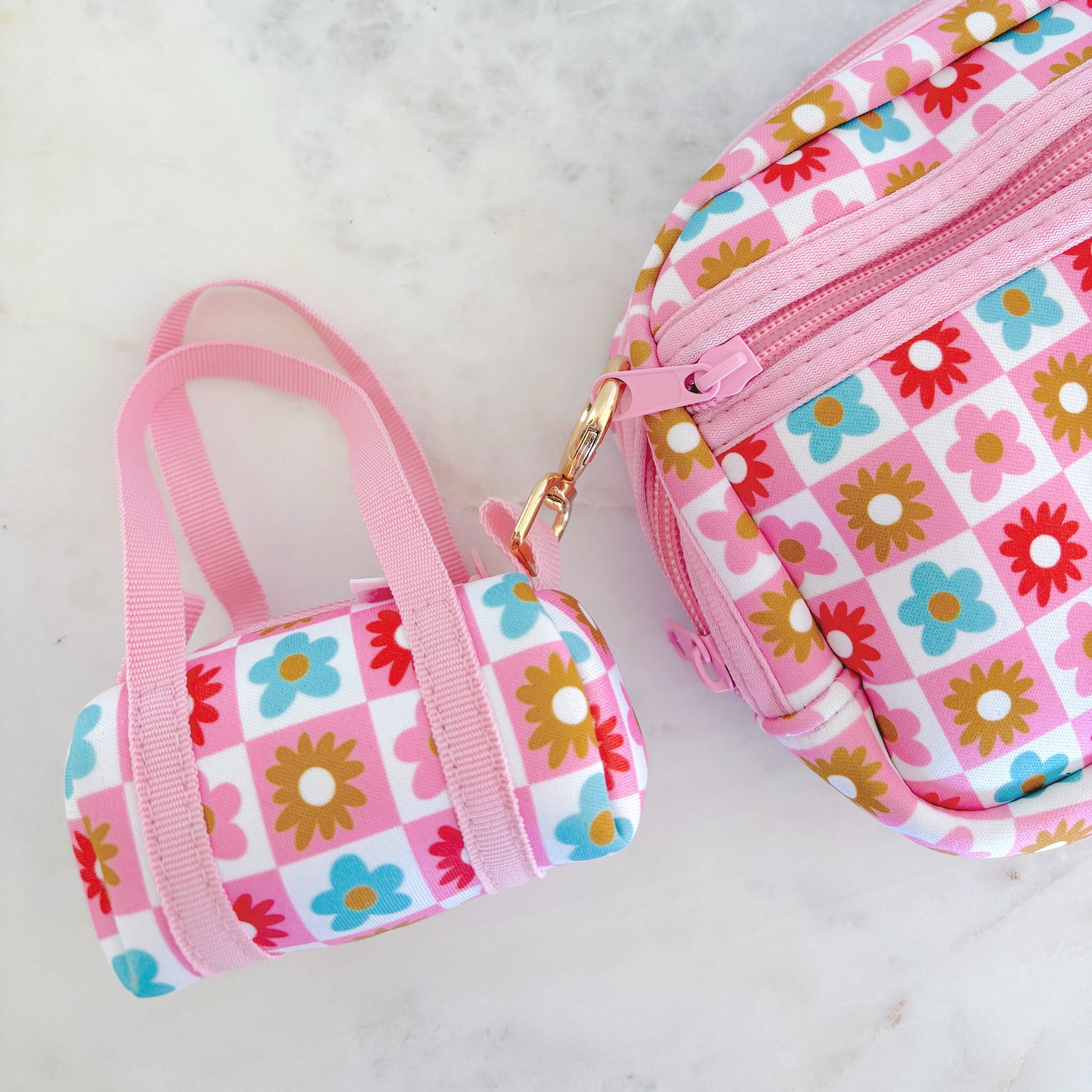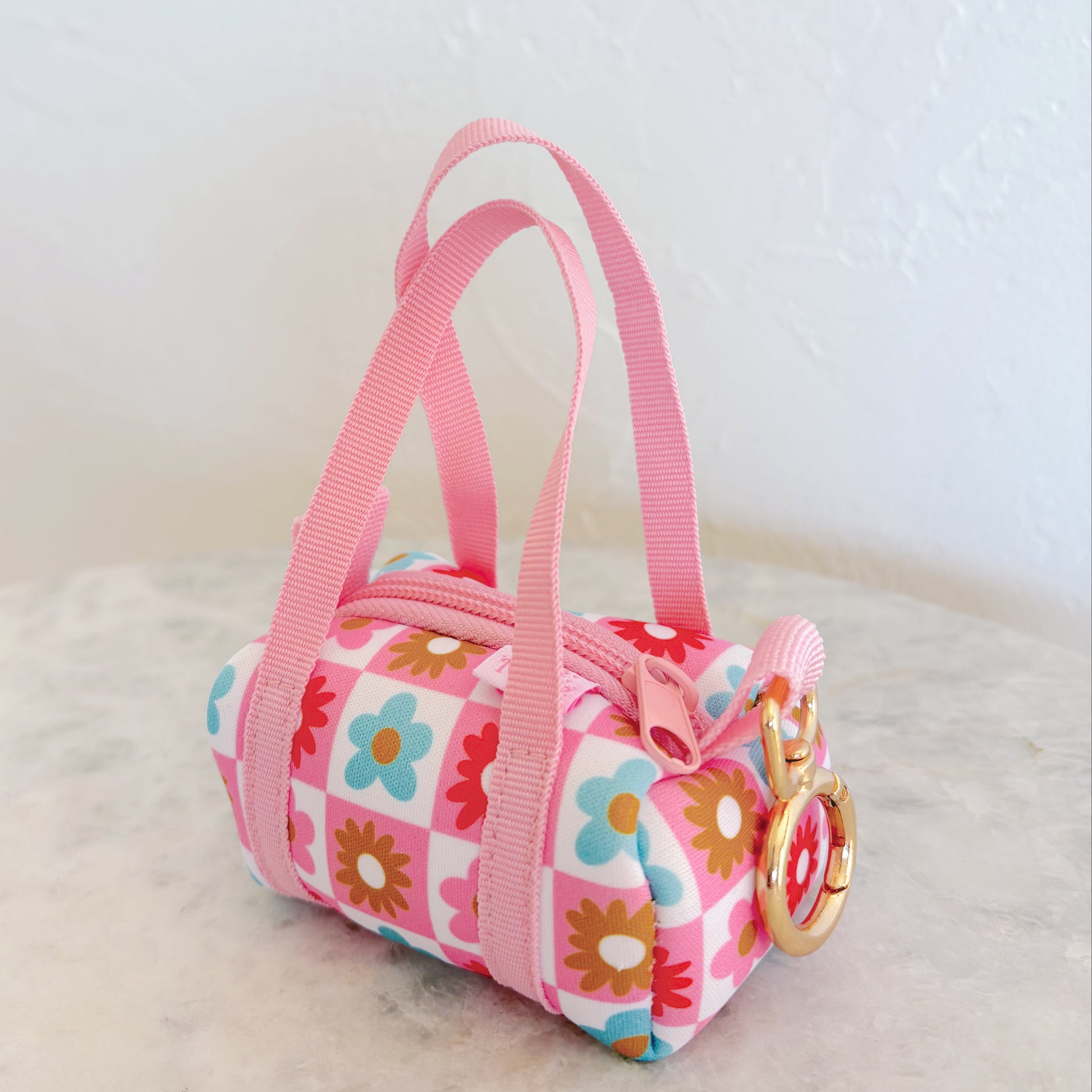 Bag Charm - Mini Purse Keychain - Checkered Floral