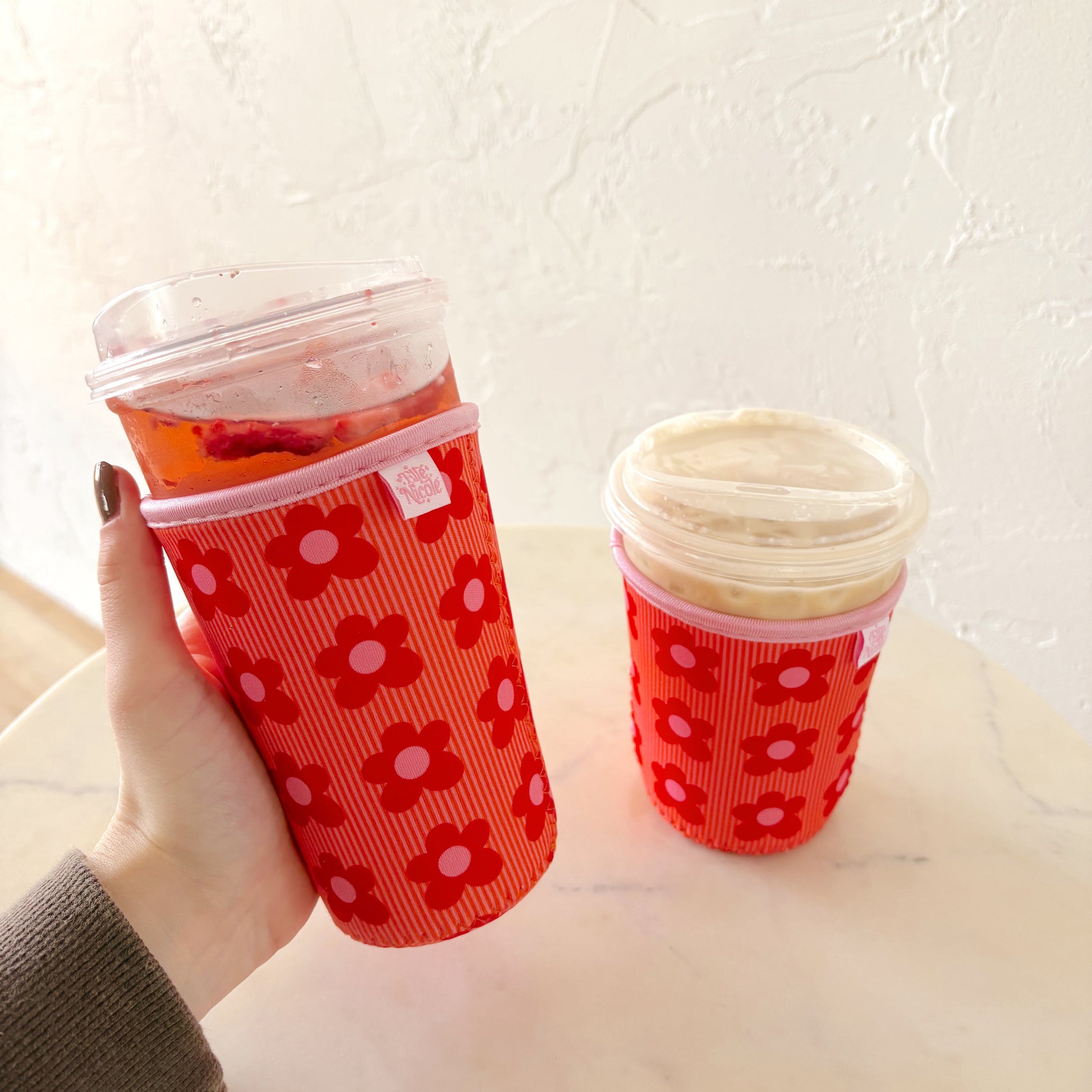 Keep your hands dry and your drink cool with this retro-inspired iced coffee sleeve, featuring Ellē Nicole’s signature hand-drawn prints. Made from a durable, neoprene-like material (95% SBR + 5% polyester), this reusable cover insulates your cup while adding a fun, functional twist to your daily brew.