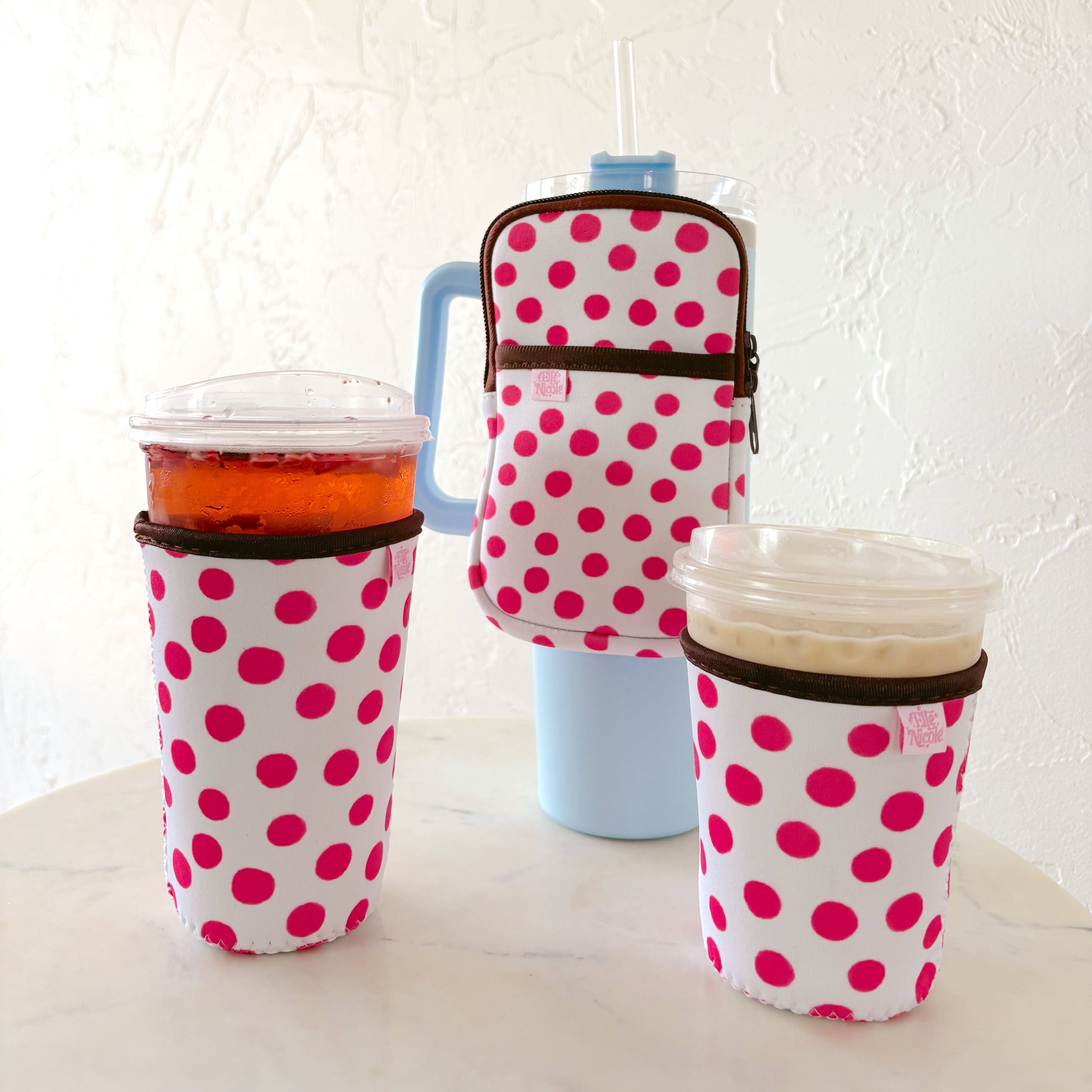 Coffee Cup Cover - Pink Polka Dots - Iced Drink Sleeve