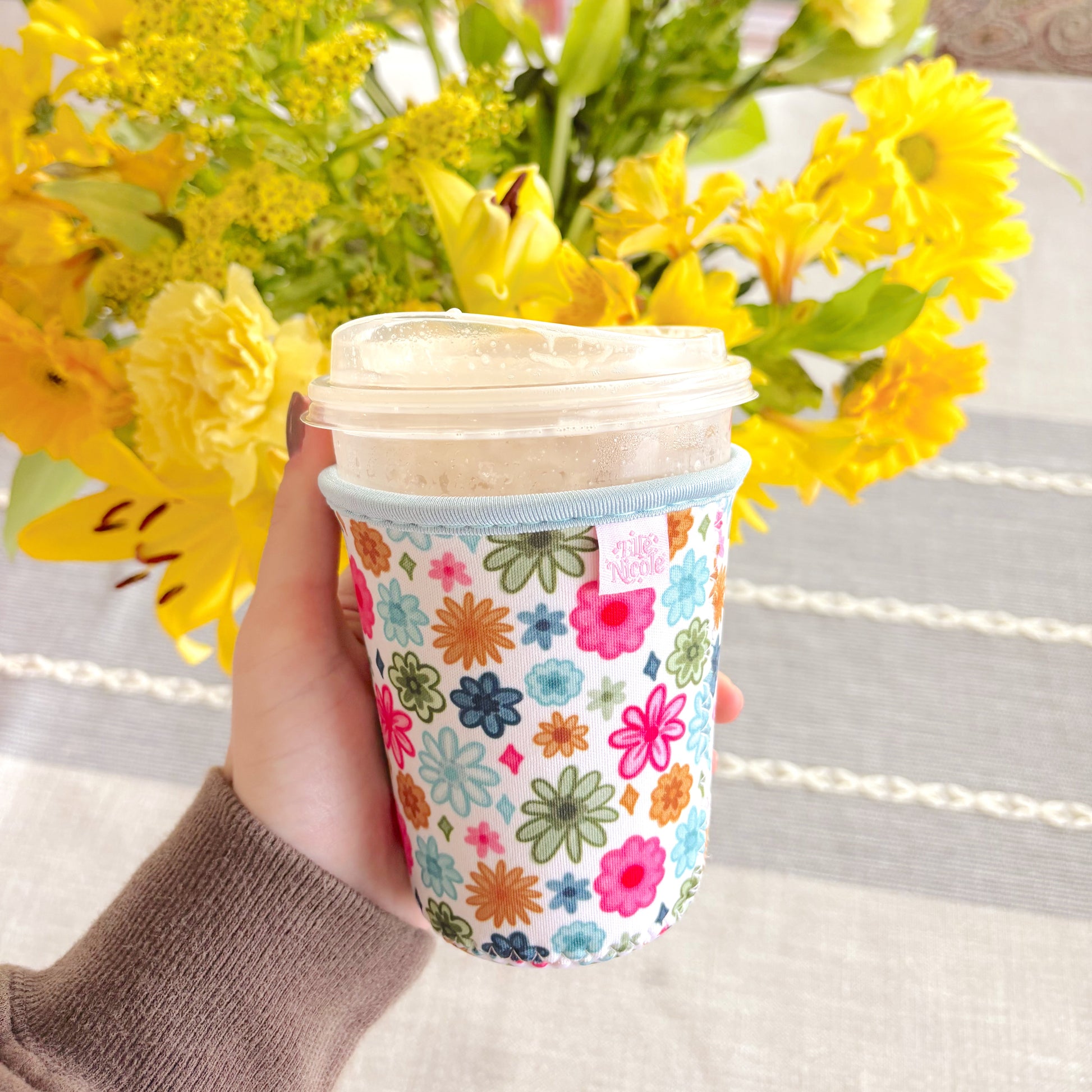 Coffee Cup Cover - Watercolor Florals - Iced Drink Sleeve