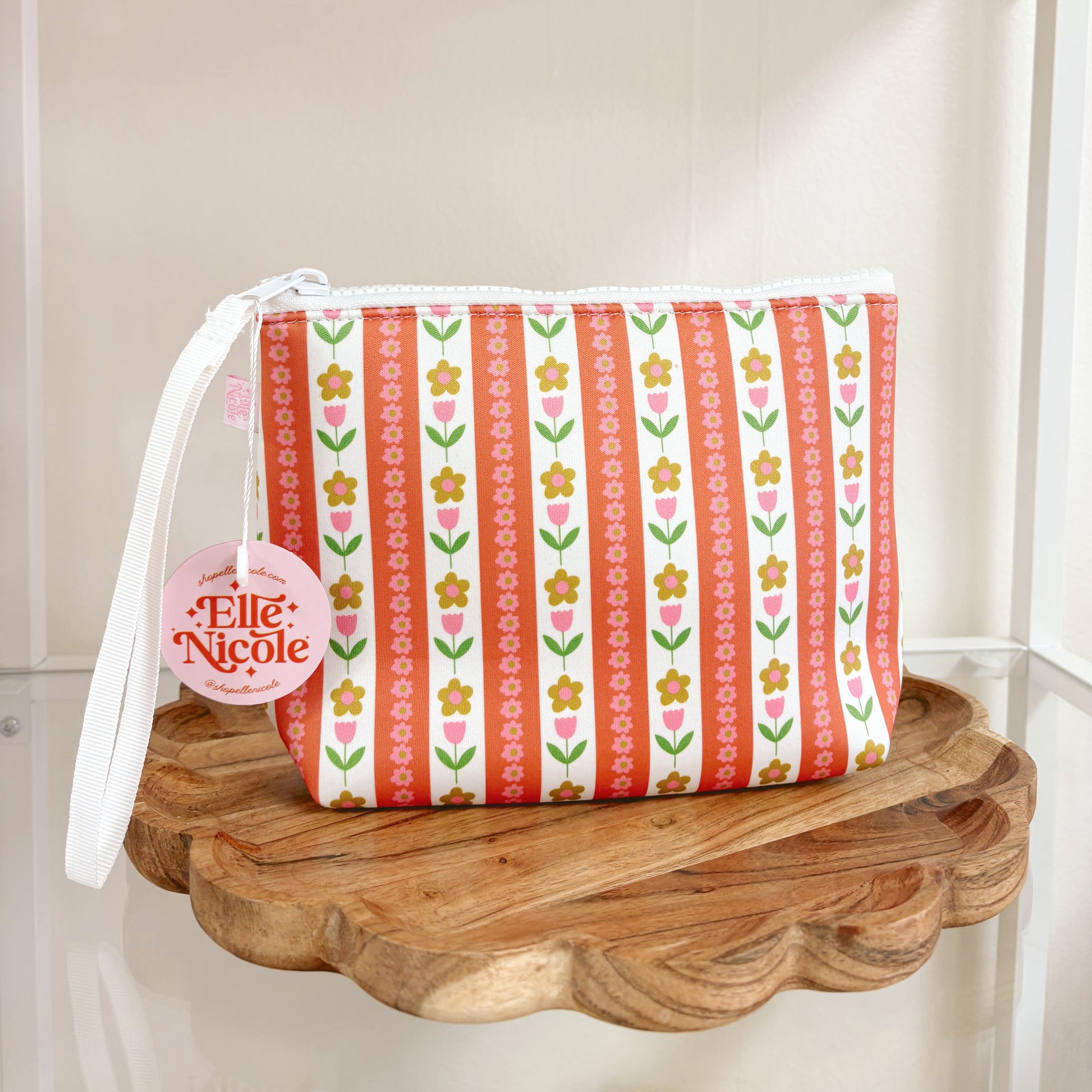 Cosmetic Bag With Wrist Strap - Tulip Stripes