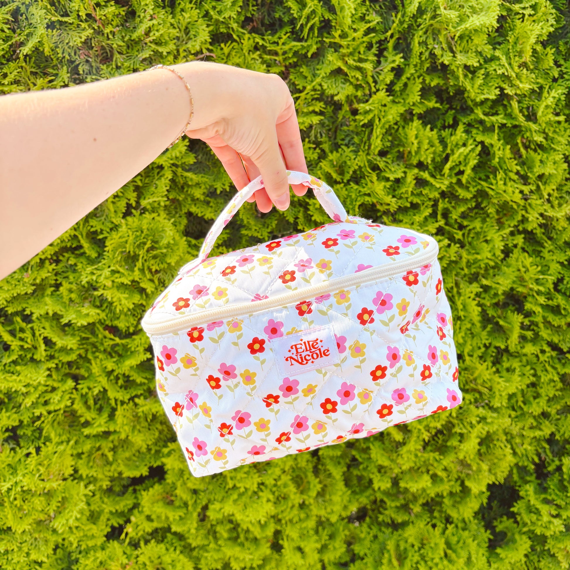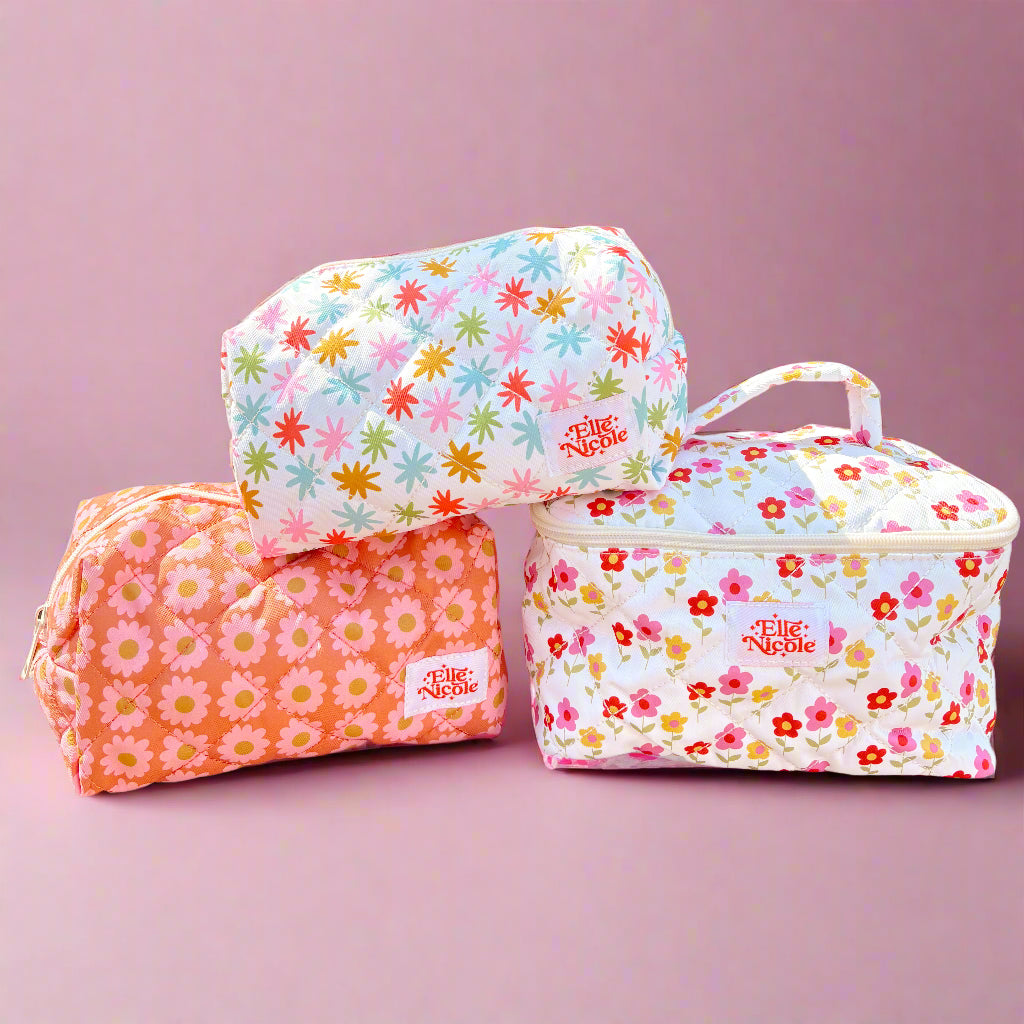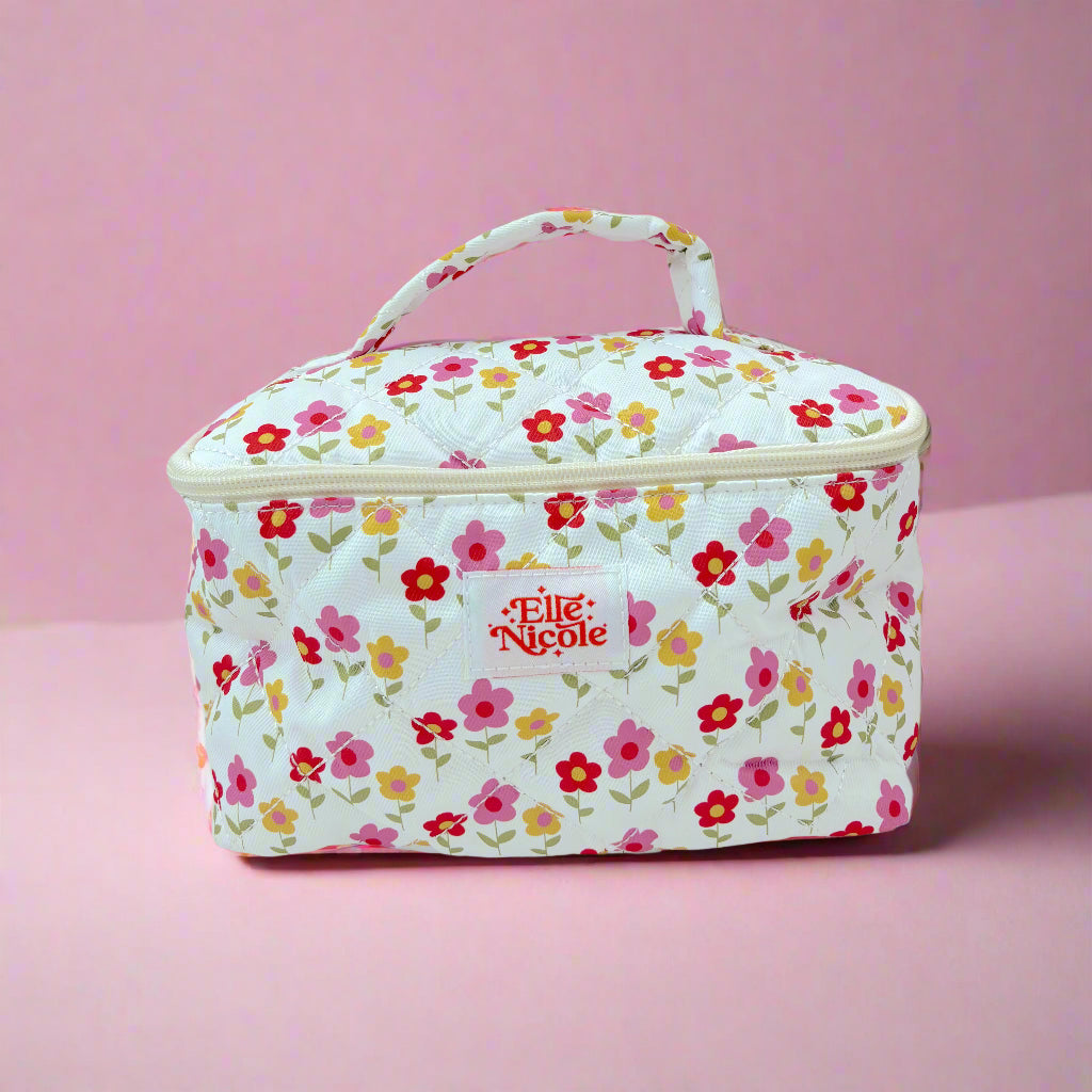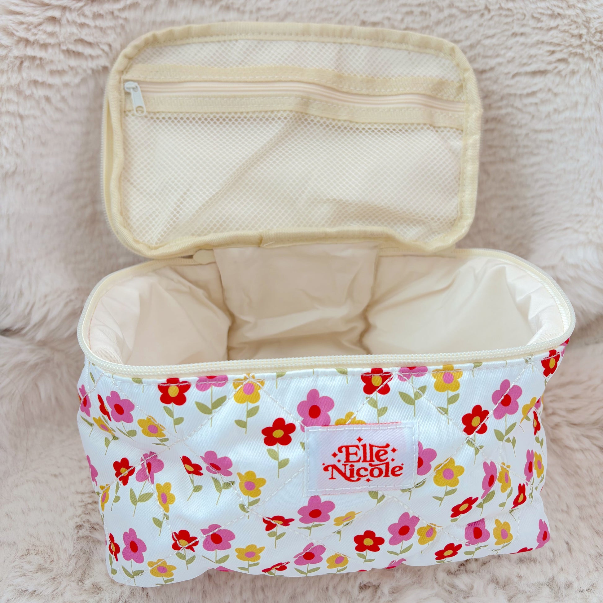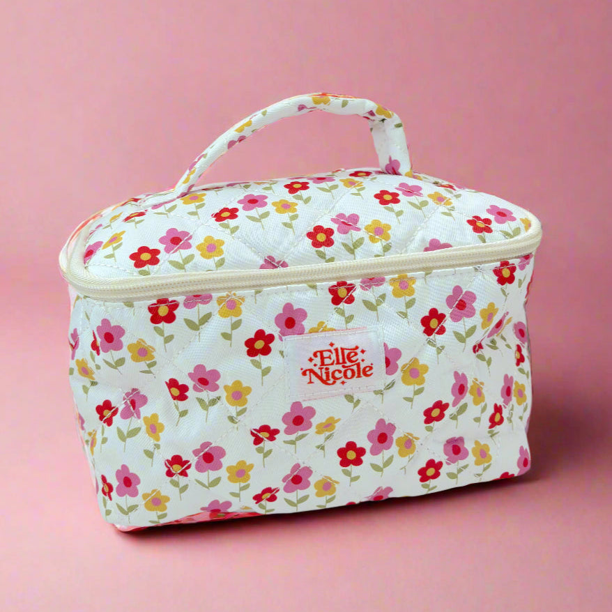Add a touch of retro charm to your organization with our Quilted Cosmetic/Pencil Bag! Made with a soft cotton poly blend, this bag is perfect for storing makeup or school supplies while on the go. Stay stylish and organized with our cute floral pattern. Perfect for any occasion!