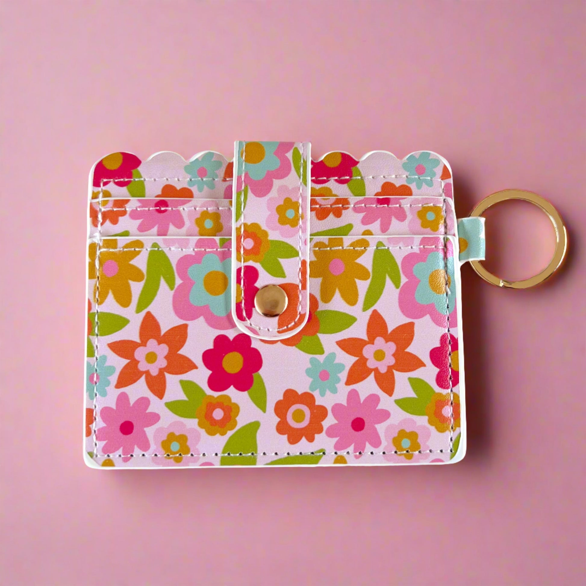 Secure your essentials with our new wallets! Crafted from high-quality faux leather, it features a clip closure and clear ID slot. With our unique hand-drawn patterns and convenient o-ring keychain, this compact wallet is a must-have accessory.